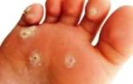 - Постепенно стопа утолщается, меняет цвет, возможно образование пузырьков с жидкостью;