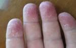 - Кожа между пальцами начинает трескаться или отслаиваться;